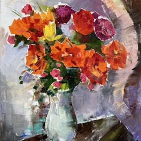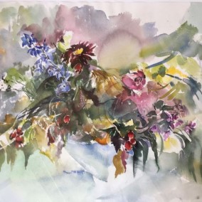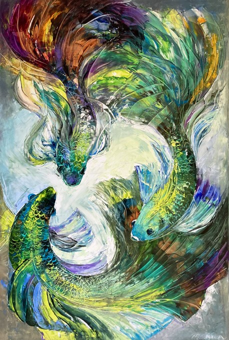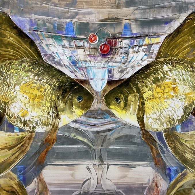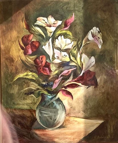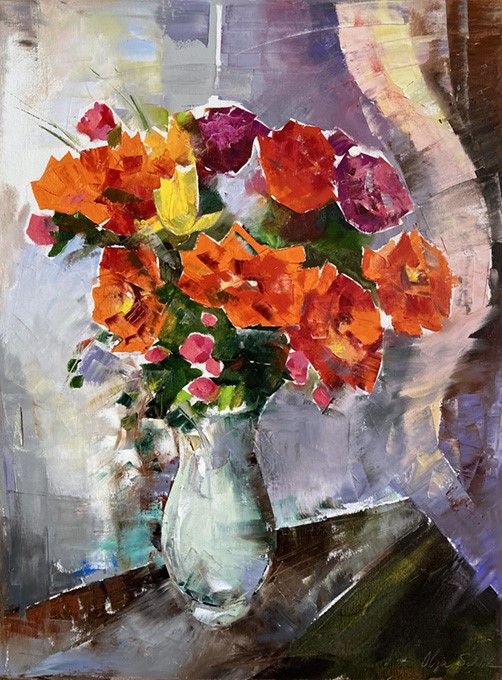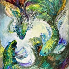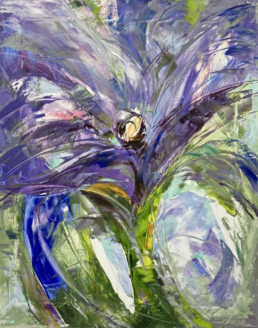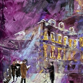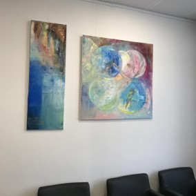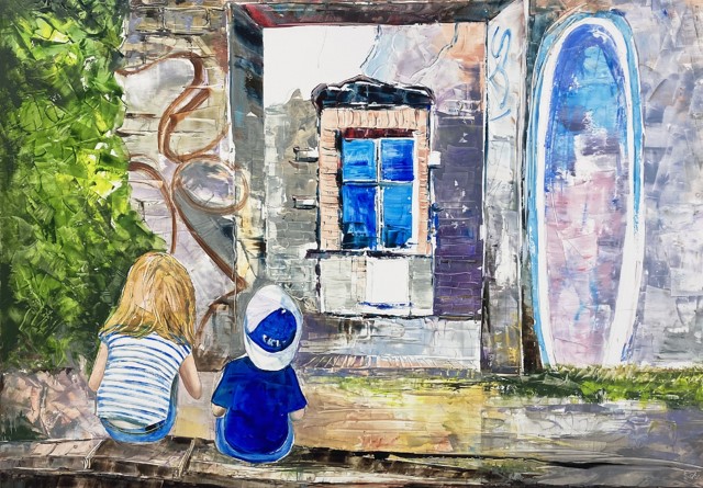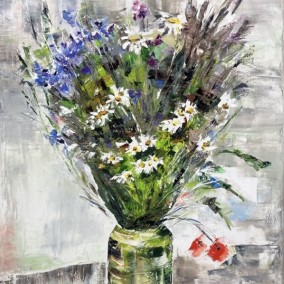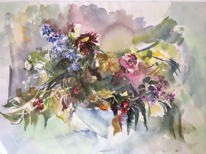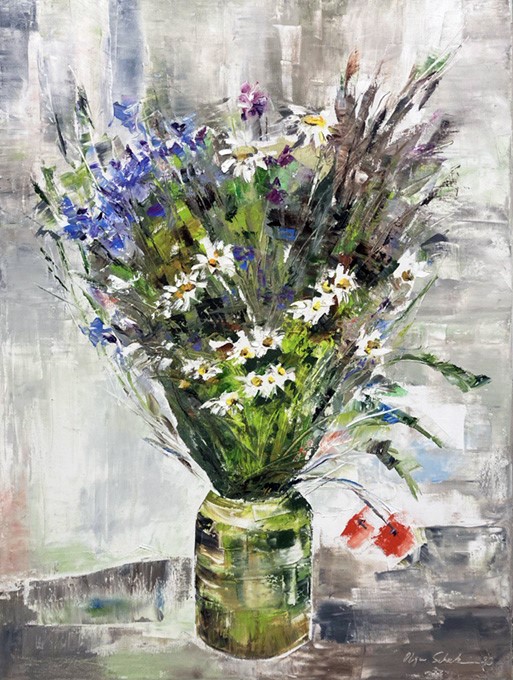 Olga Scheck schafft stets ihre eigenen Werke in Form von Collagen, Aquarellen, Grafiken sowie Öl. Ihre Kunst weitet sich in viele Richtungen, ist unvorbelastet und unabhängig.